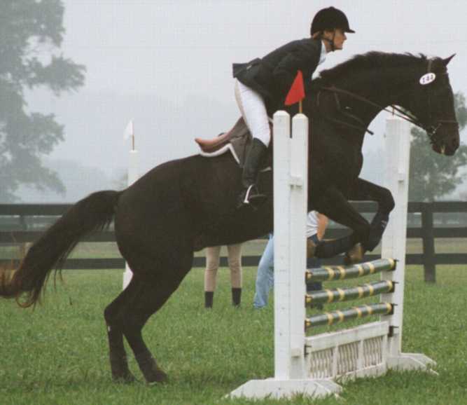 The Moncada Horse Trials were held at the Wallace Farm near Prospect, KY the weekend of Sept. 22-24, 2000. Although that's a little farther than I would normally drive to take pictures of other people riding, that Sunday seemed like a good day for a road trip for various reasons. This page has pictures of the Novice Division; other pages have Training and Preliminary/Intermediate divisions. Click on any of the pictures for a large version. I apologize for being a little early on the shutter on some of these; I thought I'd resolved my premature shooting problem, but I guess I've been out of practice lately. I make no apologies for the lousy lighting; I didn't order the weather, and even 800 ASA film had a hard time compensating for it.